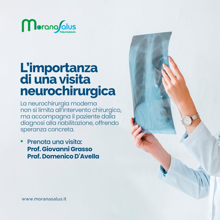 Leggi altroPresso il poliambulatorio Morana Salus puoi prenotare la tua visita #neurochirurgica per il trattamento chirurgico dei problemi che coinvolgono il cervello, la colonna vertebrale, i nervi periferici e le arterie presenti nel collo. 😊#APPUNTAMENTO:...