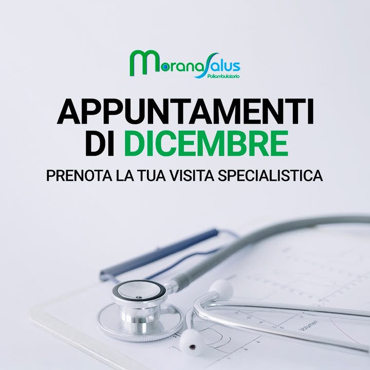 Leggi altroI nostri #APPUNTAMENTI di #DICEMBRE:➡️ 06/12 - Dott. Bianco #Otorinolaringoiatria➡️ 10/12 - Dott. Fassini #Cardiologia➡️ 12/12 - Dott.ssa Marchisotta #EndocrinologiaPrenota la tua visita al numero verde ☎️ 800 625011 Presso Morana Sal...